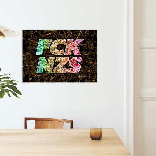 Karten kommunizieren Botschaften - und diese FCK NZS Wandkarten machen ein klares Statement gegen Hass, gegen Rechts, gegen den Rechtsruck und für Demokratie, Vielfalt und eine bunte Stadt. In München, aber auch für andere Städte Deutschland!