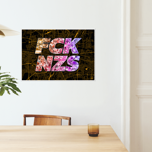 FCK NZS Karte München Quer | schwarz-gold-orange-lila | Fine Art Print