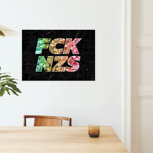 FCK NZS Karte München Quer | schwarz-bunt | Fine Art Print