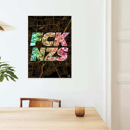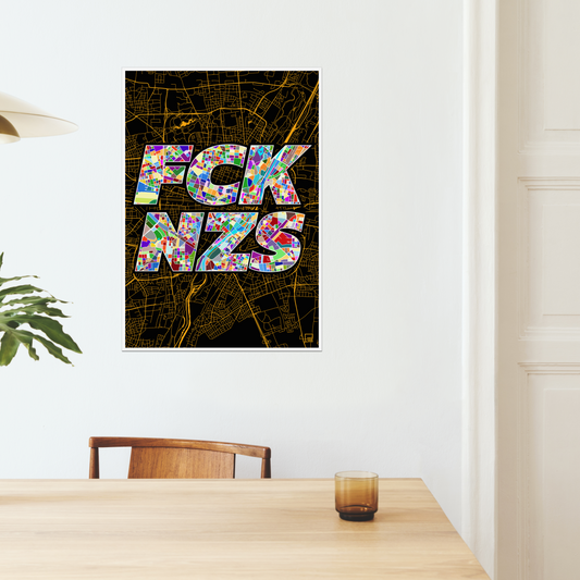 FCK NZS Karte München Hoch | schwarz-gold-bunt | Fine Art Print