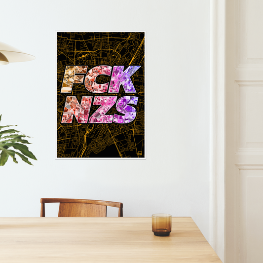 FCK NZS Karte München Hoch | schwarz-gold-orange-lila | Fine Art Print