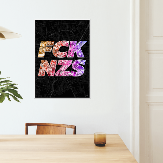 FCK NZS Karte München Hoch | schwarz-bunt | Fine Art Print