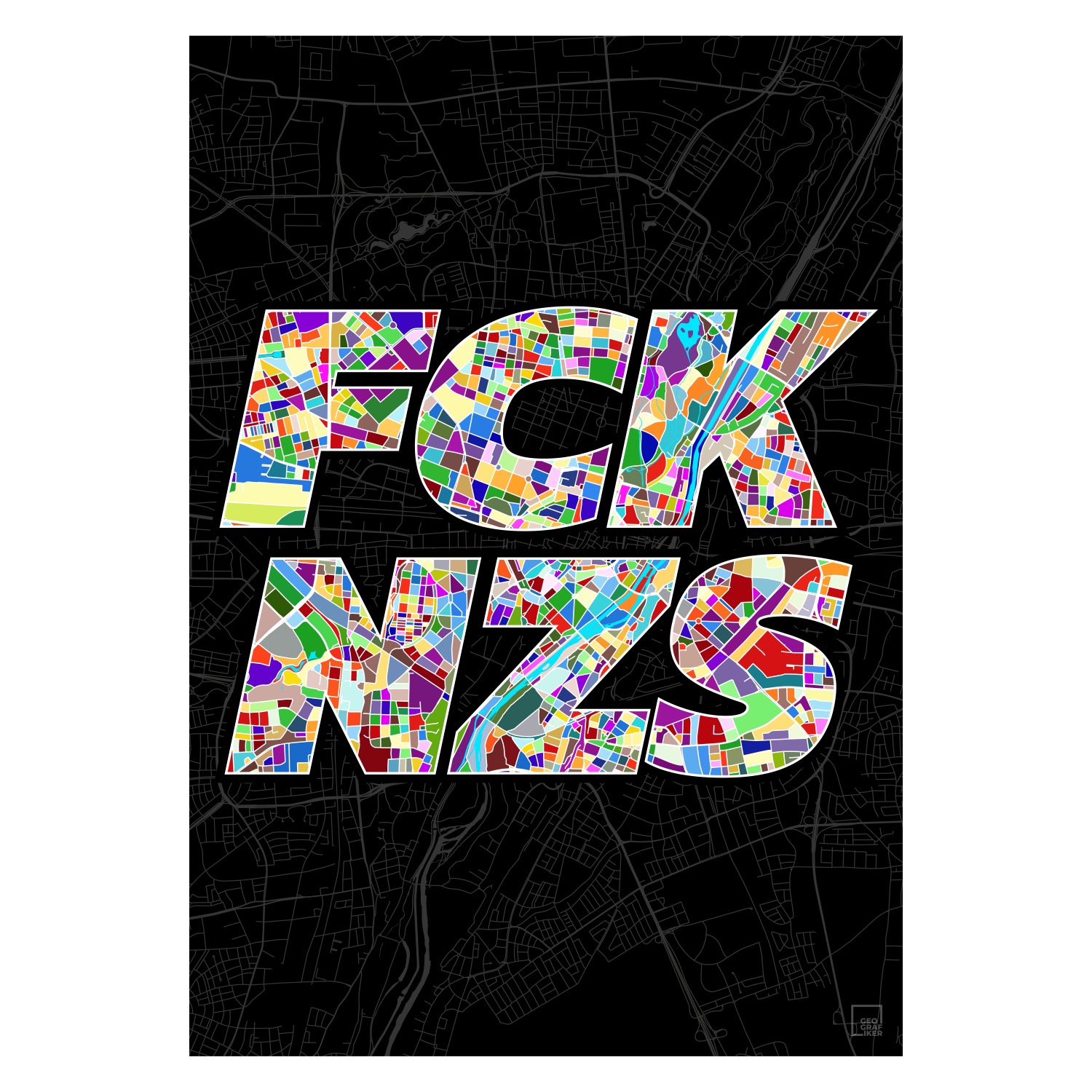 Diese FCK NZS Wandkarten machen ein klares Statement gegen Hass, gegen Rechts, gegen den Rechtsruck, gegen die AFD und für Demokratie, Vielfalt und eine bunte Stadt. Nicht nur für München!