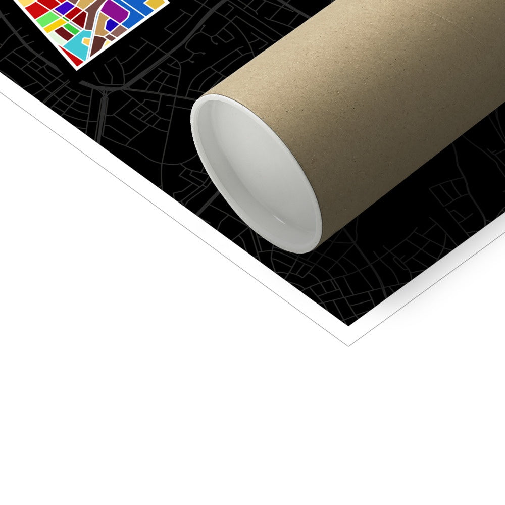 Präsentes, positives und starkes Design kombiniert mit minimalistischen Elementen eines künstlerischen und ästethischen Stadtplans. Als Fine Art Print auf 200g starkem Kunstdruckpapier.